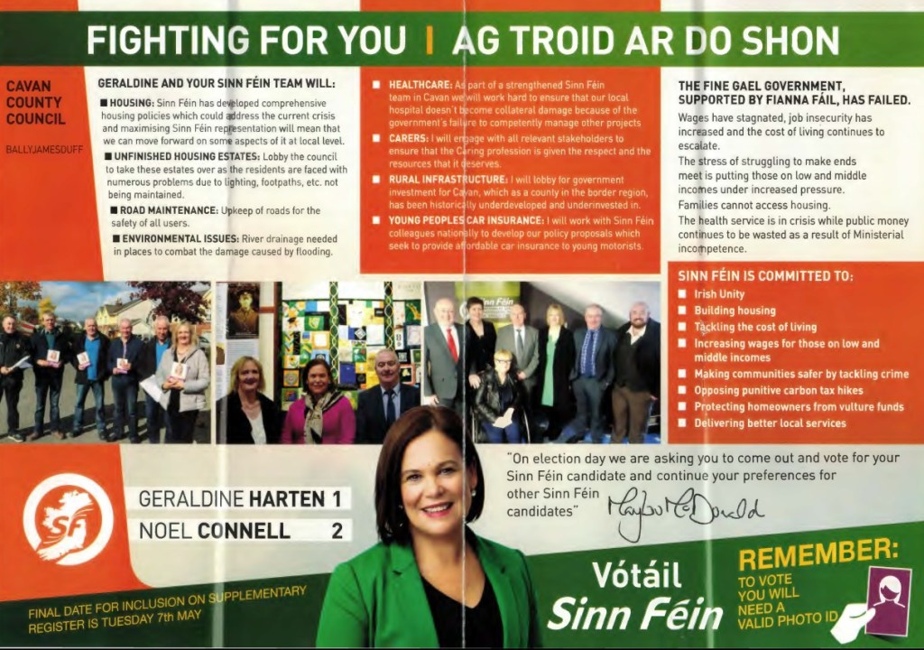 Leaflet from Geraldine Harten, Noel Connell – Sinn Féin – Ballyjamesduff #LE19 » GeraldineHarten4