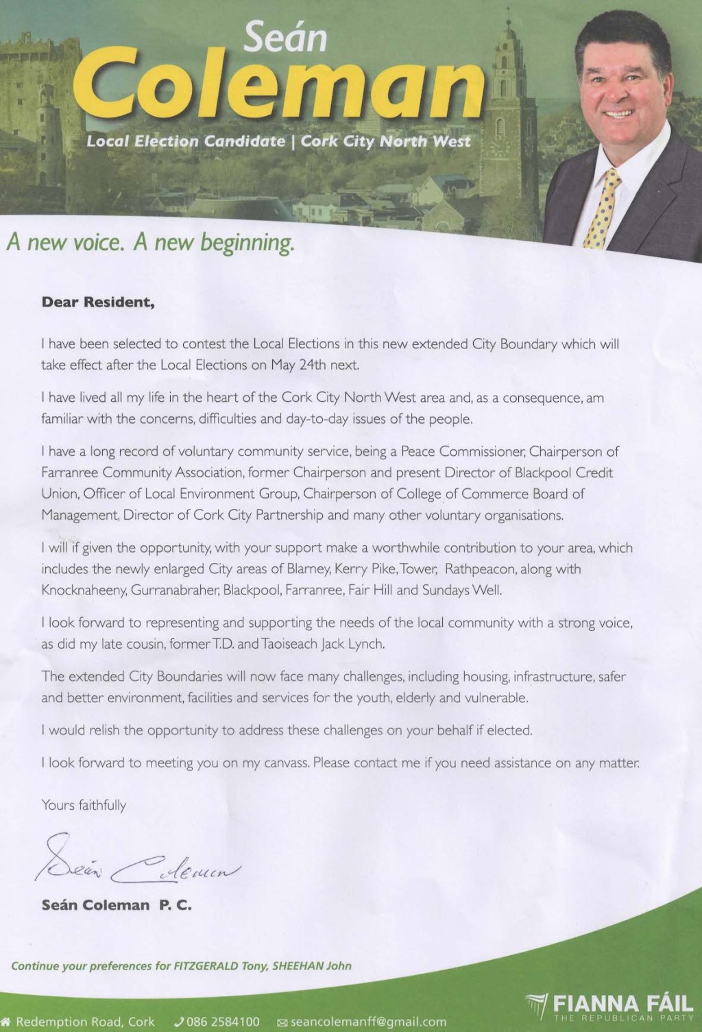 Leaflet from Seán Coleman – Fianna Fáil – Cork City North West #LE19 » EPSON MFP image