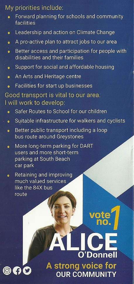 Leaflet from Alice O’Donnell – Fine Gael – Greystones #LE19 » AliceODonnell3