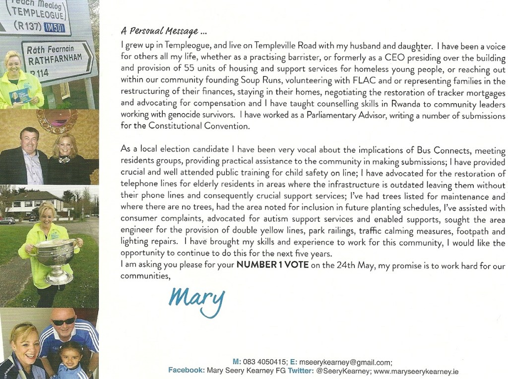 Leaflet from Mary Seery Kearney – Fine Gael – Rathfarnham Templeogue #LE19 » MarySeeryKearney2