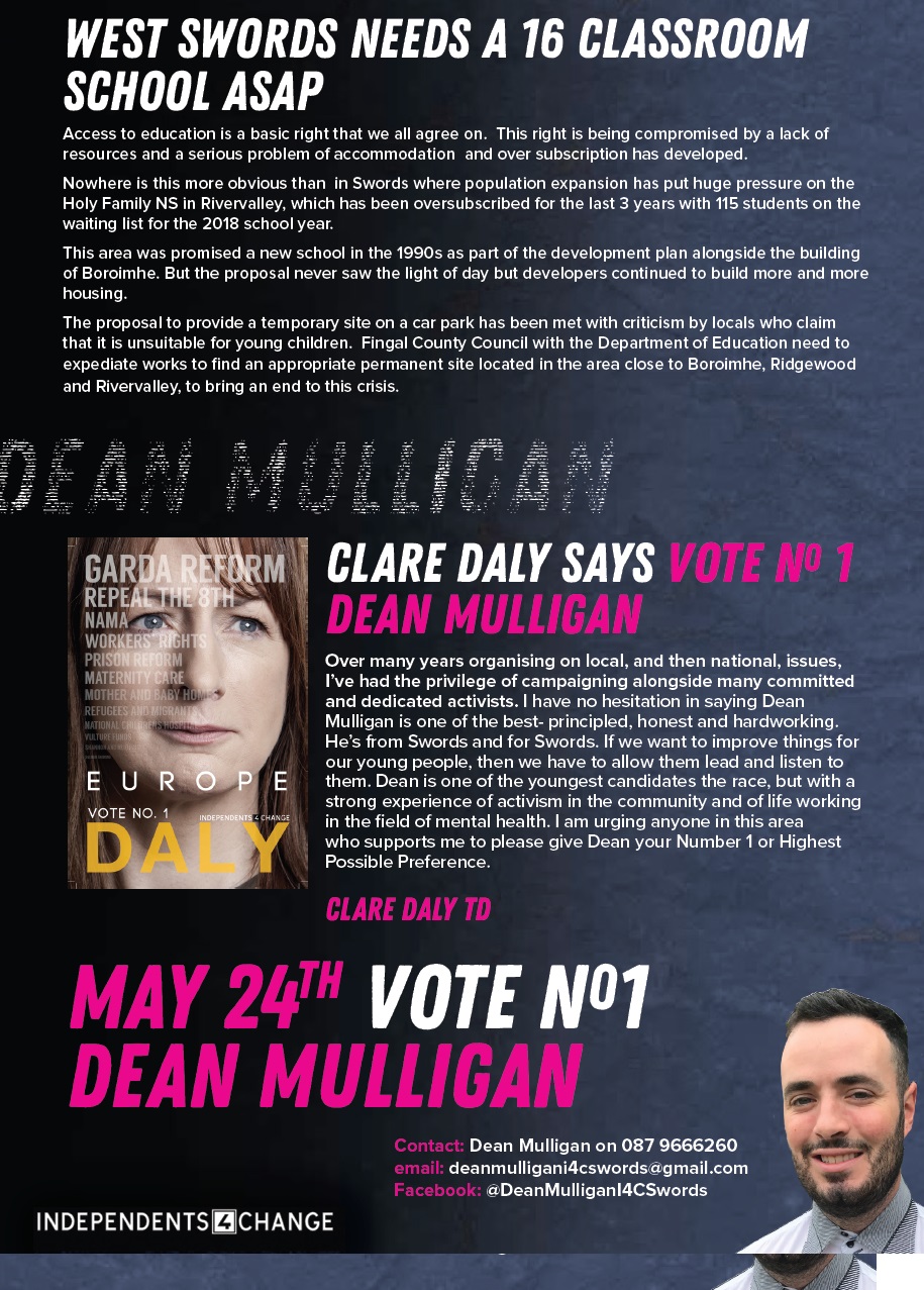Leaflet from Dean Mulligan- Independents4Change – Swords #LE19 » DeanMulligan4