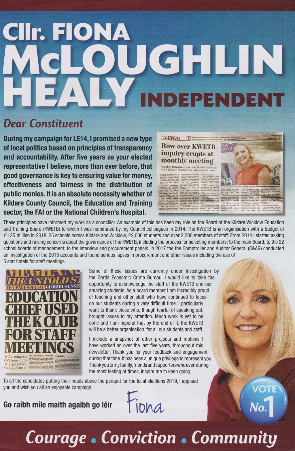 Leaflet from Fiona McLoughlin Healy – Independent – Newbridge #LE19 » FMH1