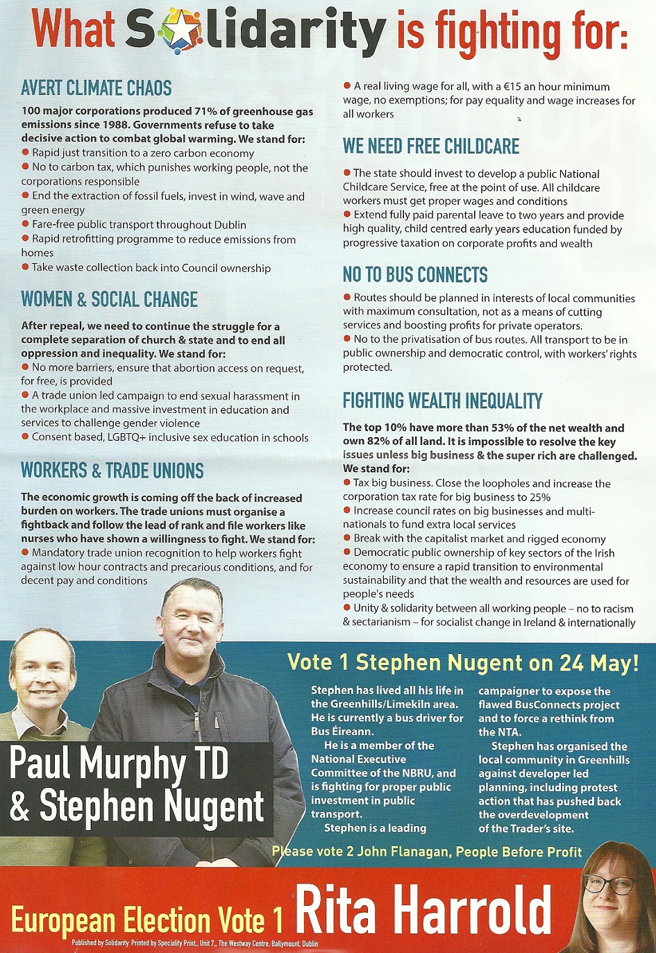 Leaflet from Stephen Nugent – Solidarity – Rathfarnham Templeogue #LE19 » StephenNugent2