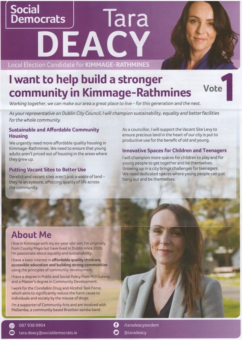 Leaflet from Tara Deacy – Social Democrats – Kimmage Rathmines #LE19 » TaraDeacy1