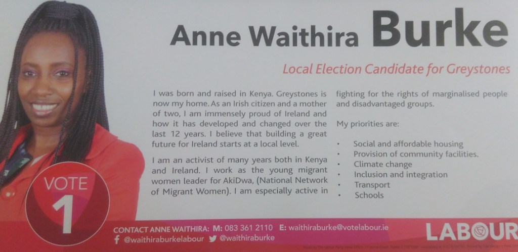 Leaflet from Anne Waithira Burke – Labour – Greystones #LE19 » AnneWaithiraBurke