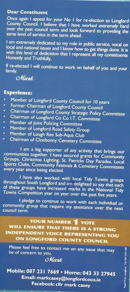 Leaflet from Mark Casey – Independent – Ballymahon #LE19 » MarkCasey2