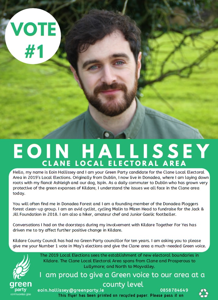 Leaflet from Eoin Hallissey – Green Party – Clane #LE19 » EoinHallissey1