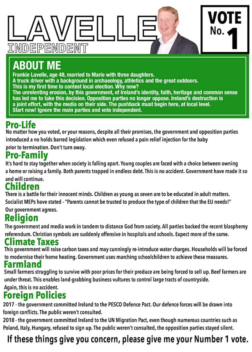 Leaflet from Frankie Lavelle – Independent – Buncrana #LE19 » FrankieLavelle