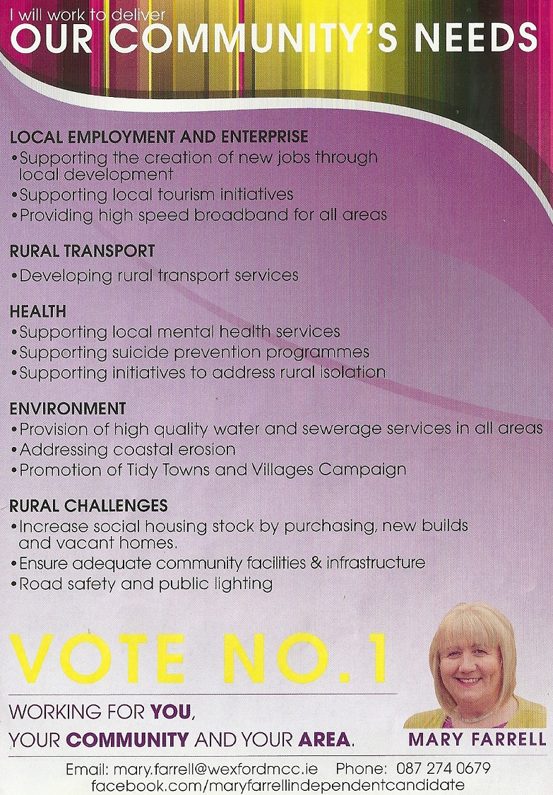 Leaflet from Mary Farrell – Independent – Kilmuckridge #LE19 » MaryFarrell2