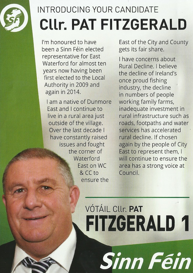 Leaflet from Pat Fitzgerald – Sinn Féin – Waterford City East #LE19 » PatFizgerald2