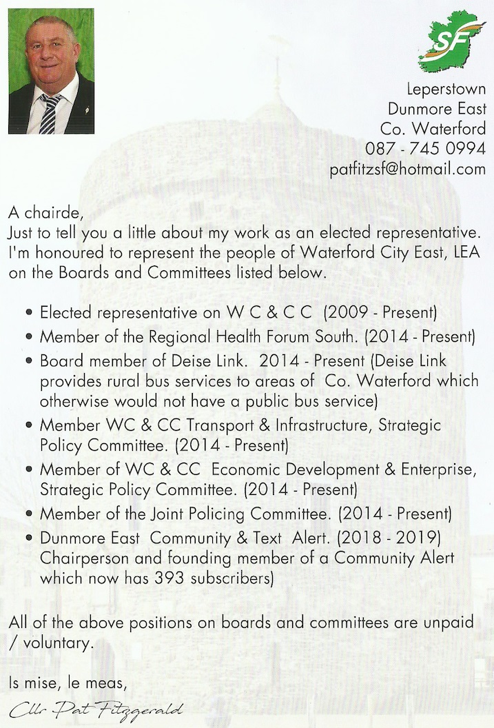 Leaflet from Pat Fitzgerald – Sinn Féin – Waterford City East #LE19 » PatFizgerald4