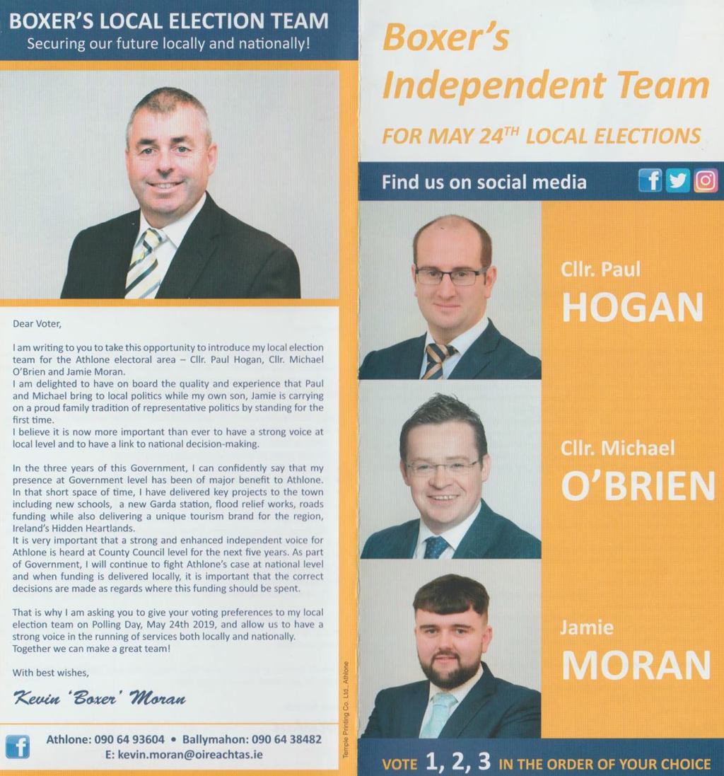 Leaflet from Paul Hogan, Michael O’Brien, Jamie Moran – Boxer’s Independent Team- Athlone (Westmeath) #LE19 » Boxersteam1