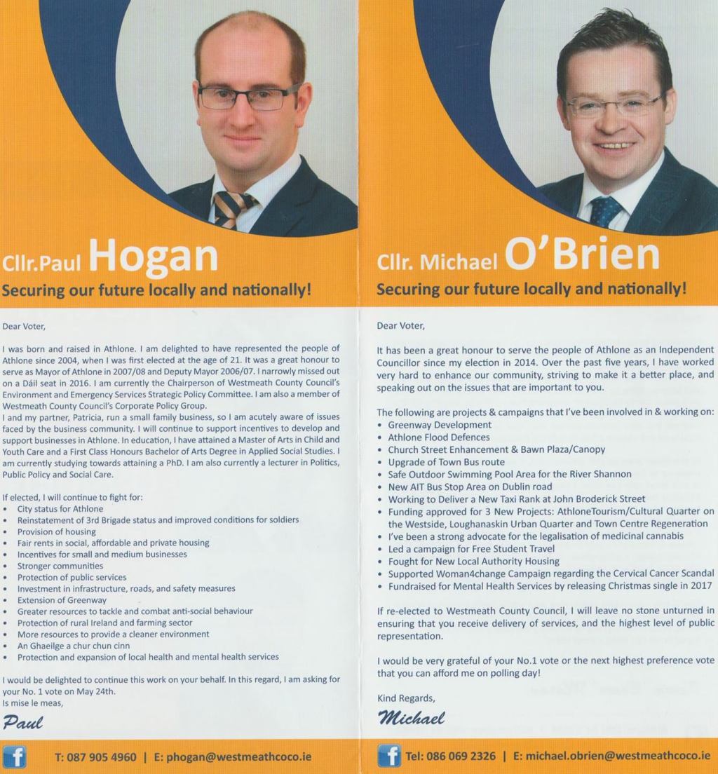 Leaflet from Paul Hogan, Michael O’Brien, Jamie Moran – Boxer’s Independent Team- Athlone (Westmeath) #LE19 » Boxersteam2