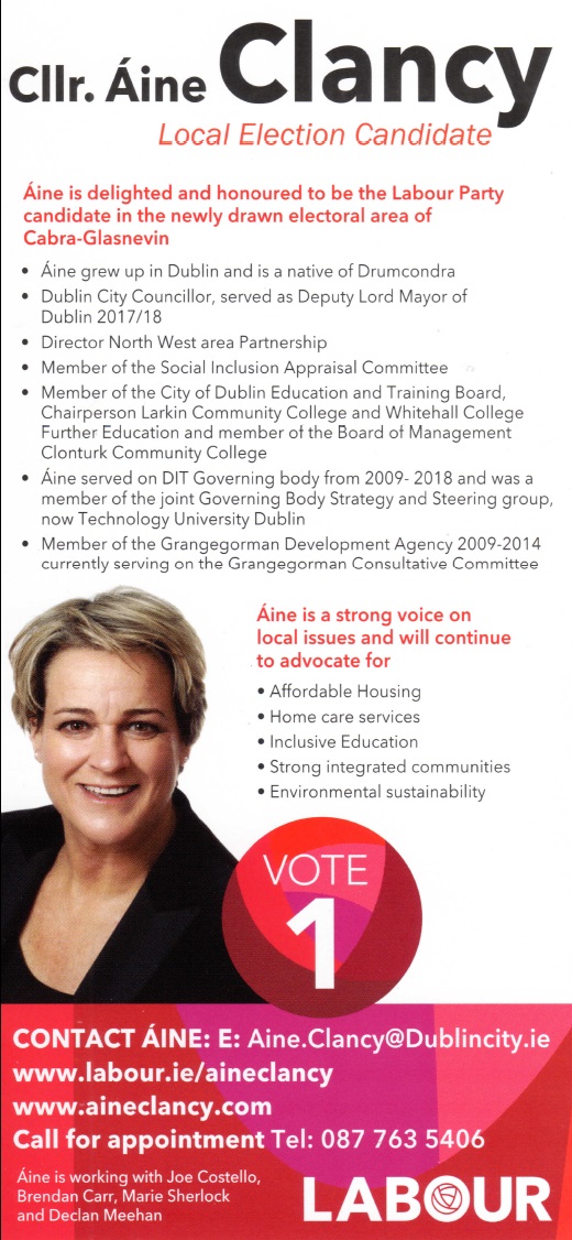Leaflet from Áine Clancy – Labour – Cabra Glasnevin #LE19 » AineClancy2