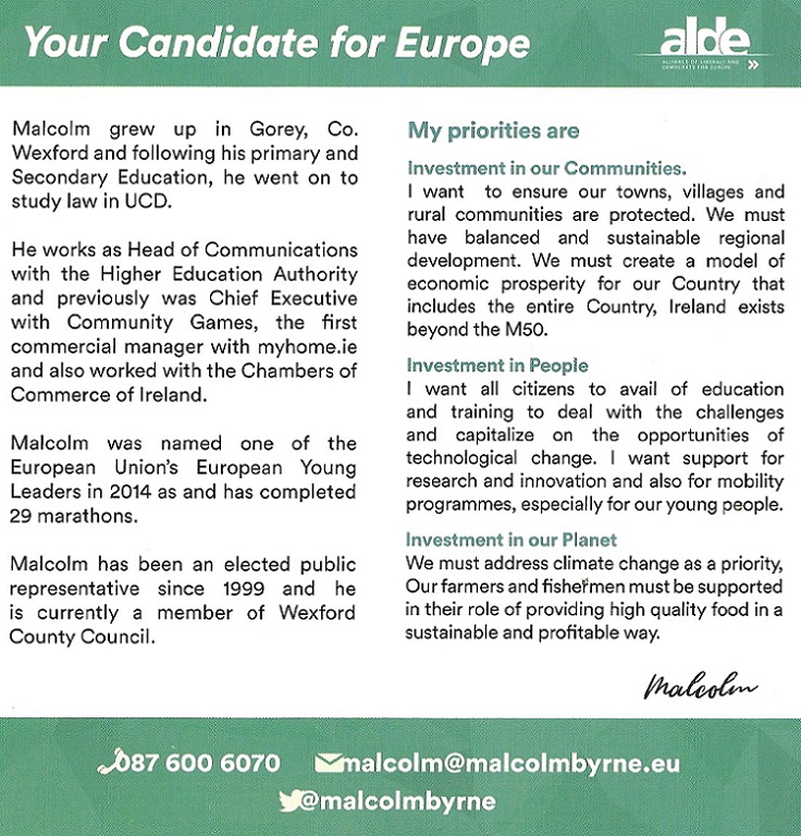 Leaflet from Malcolm Byrne – Fianna Fáil – Ireland South #EE2019 » MalcolmByrne2