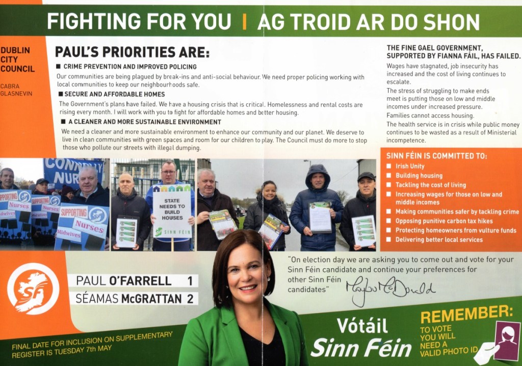 Leaflet from Paul O’Farrell – Sinn Féin – Cabra Glasnevin #LE19 » PaulOFarrell3