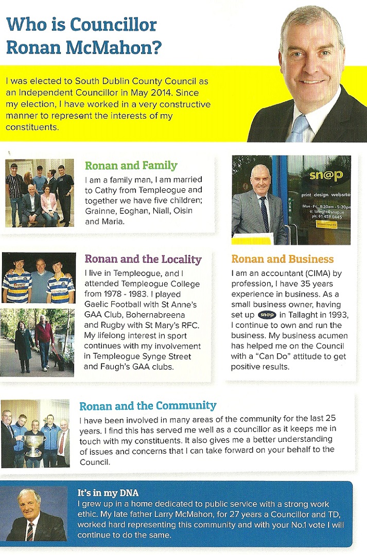 Leaflet from Ronan McMahon – Independent – Rathfarnham Templeogue #LE19 » RonanMcMahonLe194