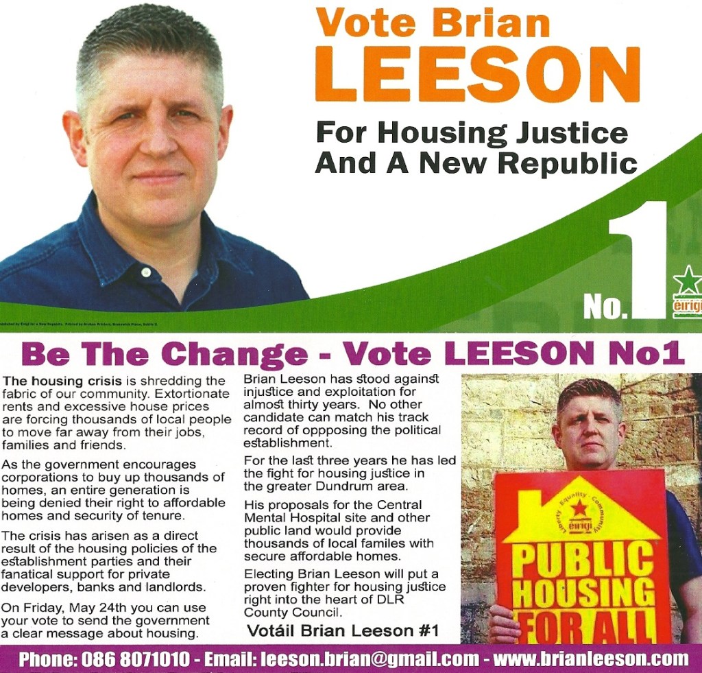 Leaflet from Brian Leeson – Éirígí – Dundrum #LE19 » BrianLeeson