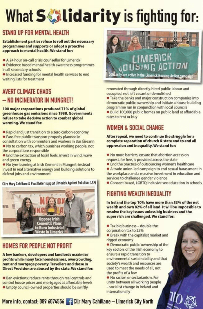 Leaflet from Mary Cahillane – Solidarity – Limerick City North #LE19 » MaryCahillane2