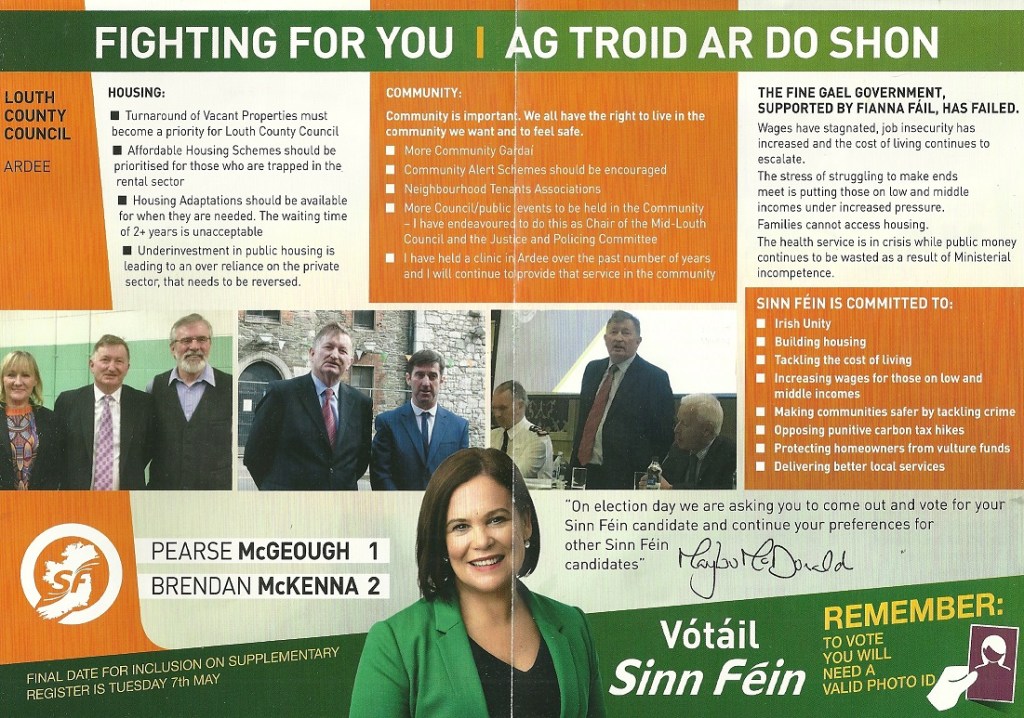 Leaflet from Pearse McGeough – Sinn Féin – Ardee #LE19 » PearseMcGough3