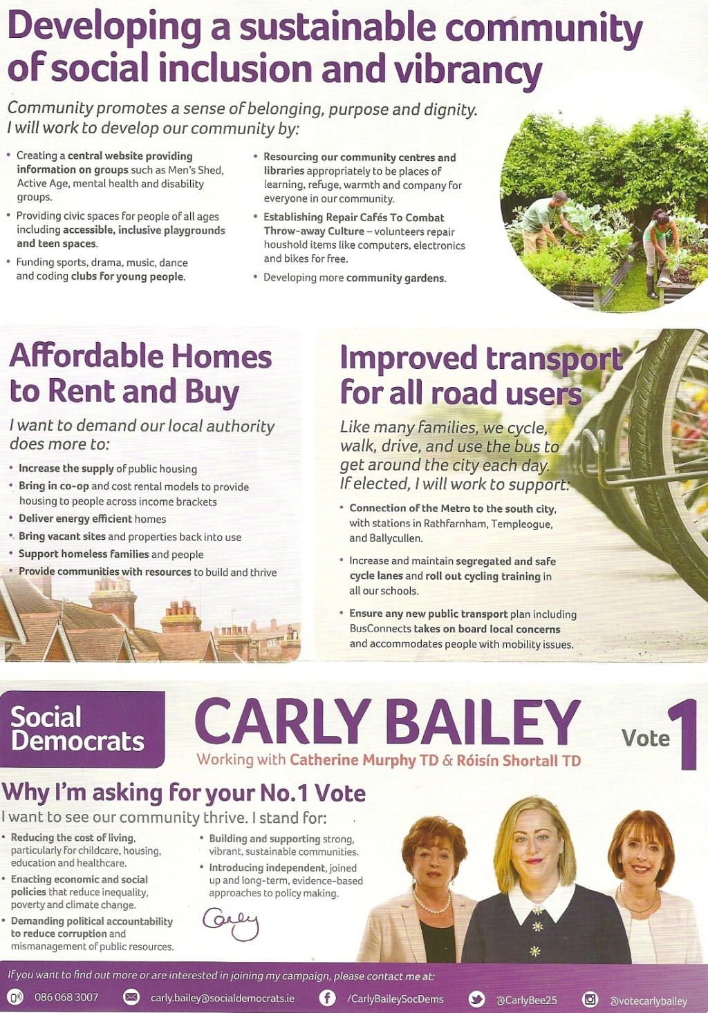 Leaflet from Carly Bailey – Social Democrats – Rathfarnham Templeogue #LE19 » CarlyBailey2