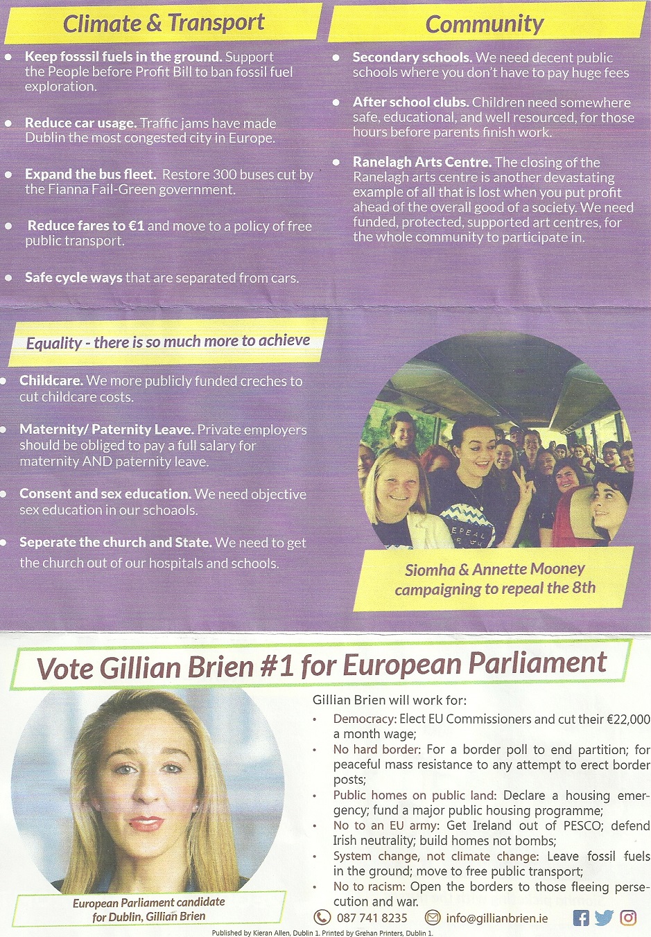 Leaflet from Siomha Ní Aonghusa – People Before Profit – Pembroke #LE19 » SiomhaNiAonghusa2