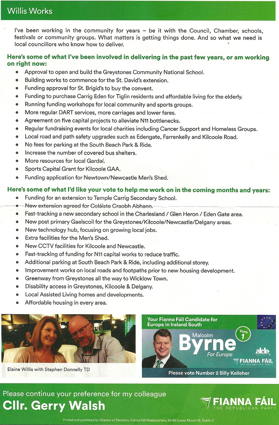 Leaflet from Elaine Willis – Fianna Fáil – Greystones #LE19 » ElaineWillis2