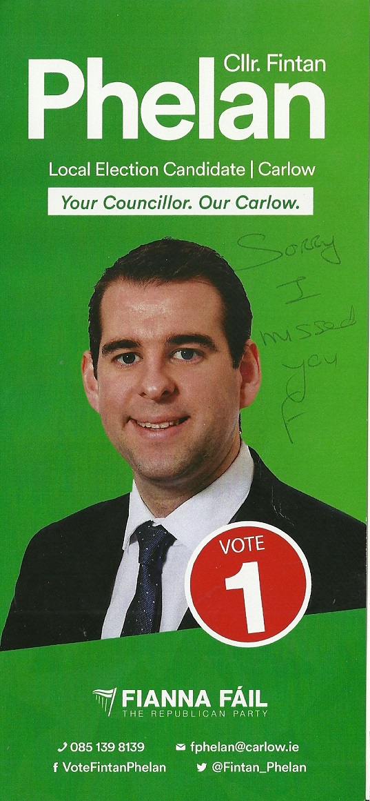 Leaflet from Fintan Phelan – Fianna Fáil – Carlow #LE19 » FintanPhelan1