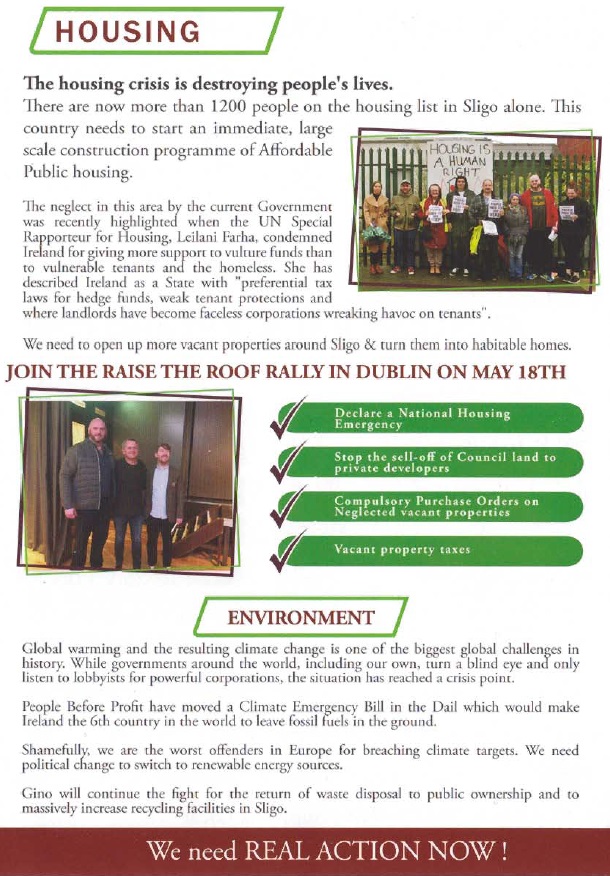 Leaflet from Gino O’Boyle – People Before Profit – Sligo Strandhill #LE19 » GionOBoyle3
