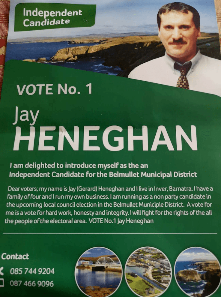 Leaflet from Jay Heneghan – Independent – Belmullet #LE19 » JayHenegan1