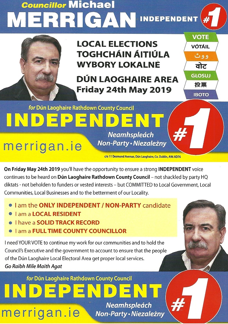 Leaflet from Michael Merrigan – Independent – Dun Laoghaire #LE19 » MichaelMerrigan1