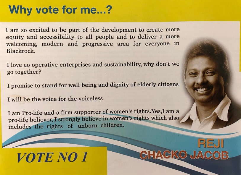Leaflet from Reji Chacko Jacob -Independent -Blackrock #LE19 » RejiChackoJacob4
