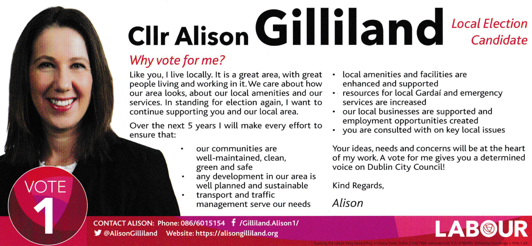 Leaflet from Alison Gilliland -Labour – Artane-Whitehall #LE19 » AlisonGilliand