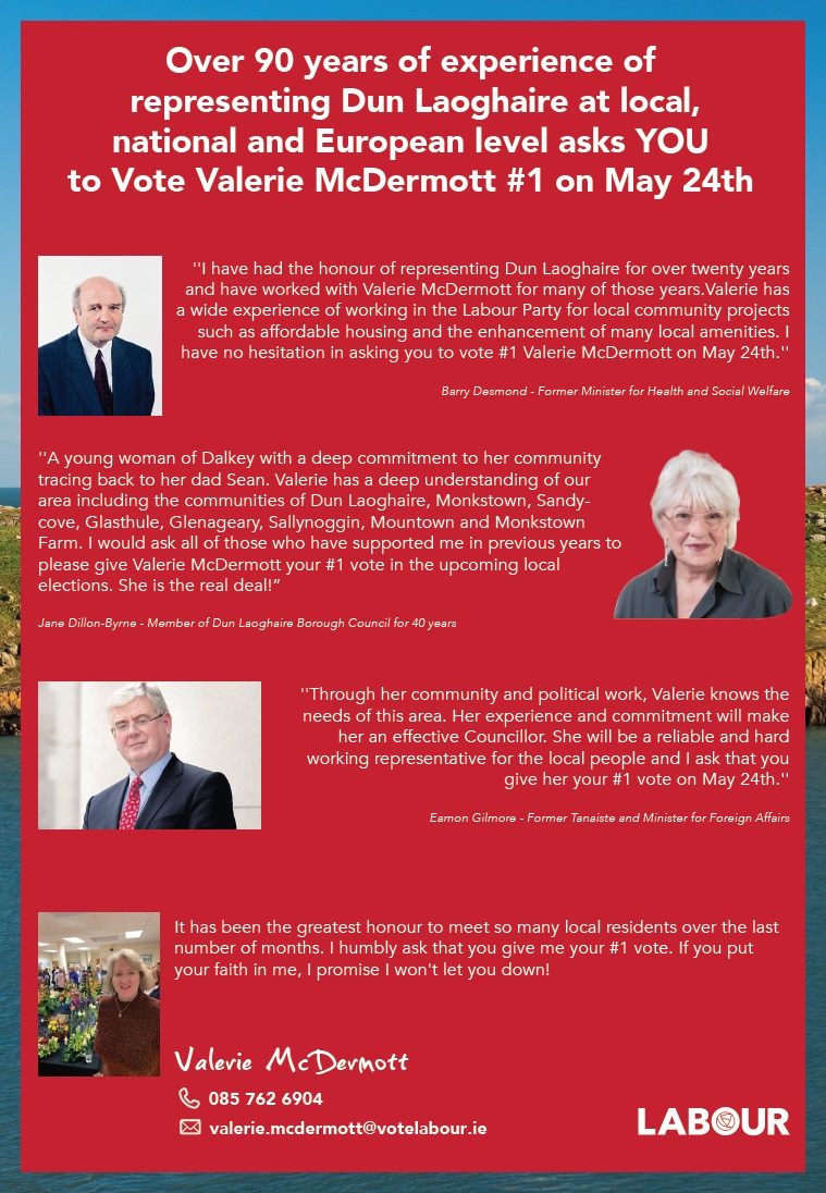 Leaflet (With Endorsements) from Valerie McDermott – Labour – Dun Laoghaire #LE19 » ValerieMcDermottd