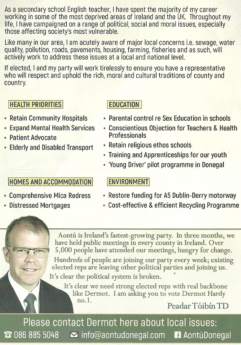 An open letter from the “dead” by Father Sweeney and leaflet appealing for votes for Aontú » DermotHardy2