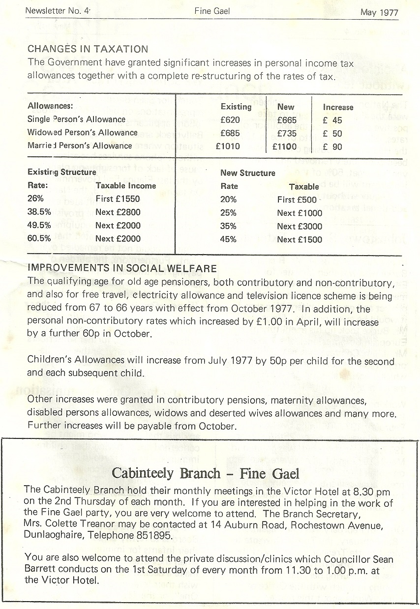Fine Gael Cabinteely Branch Newsletter May 1977 » CabinteelyFG1977c