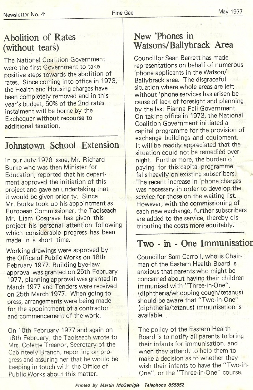 Fine Gael Cabinteely Branch Newsletter May 1977 » CabinteelyFG1977d