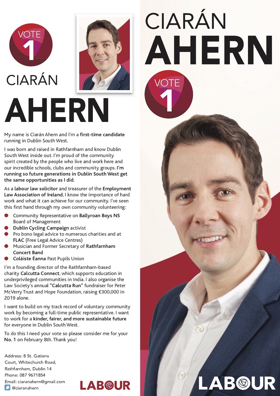 Leaflet from Ciarán Ahern – Labour – Dublin South West #GE20 #GE2020 » CiaranAhern1