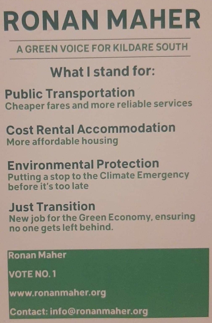Leaflet from Ronan Maher – Green Party – Kildare South #GE20 #GE2020 » RonanMaher2