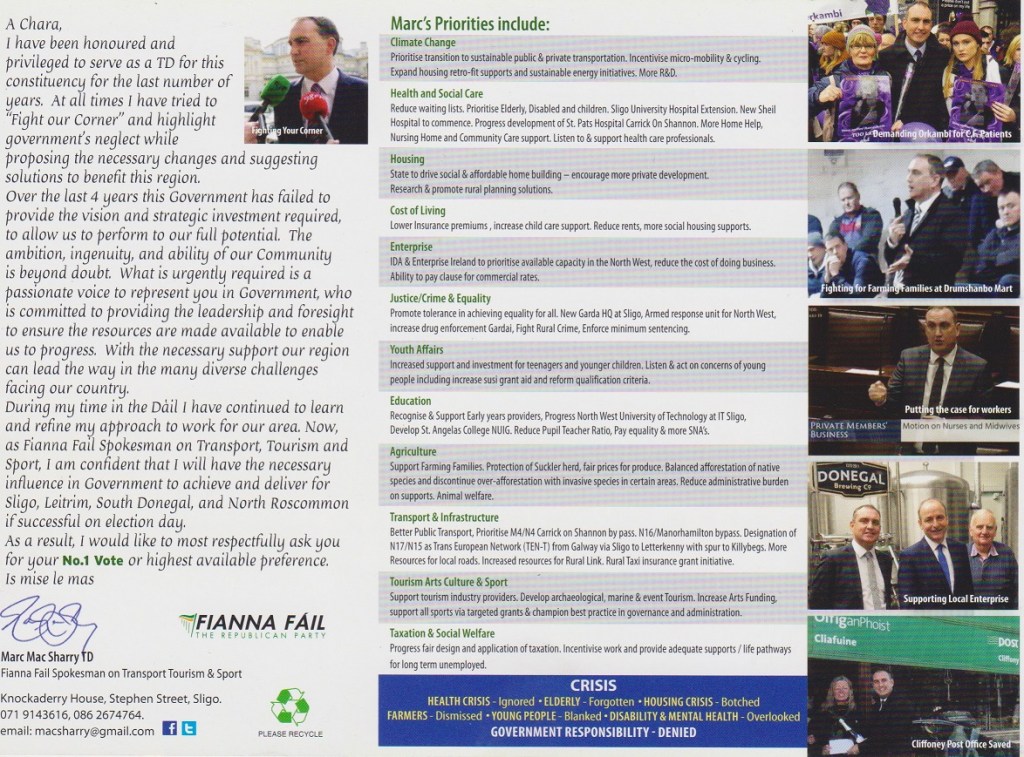 Leaflet from Marc MacSharry – Fianna Fáil – Sligo Leitrim #GE2020 #GE20 » Marc Mac Sharry (b)