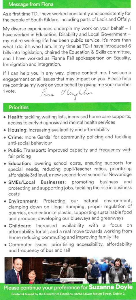 Leaflet from Fiona O’Loughlin – Fianna Fáil – Kildare South #GE2020 #GE20 » FionaOLoughlinGE20b