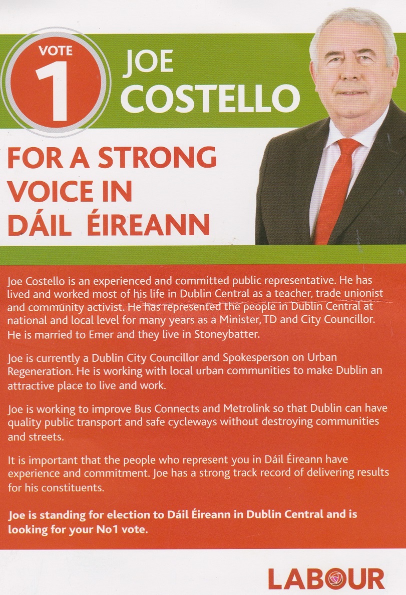 Leaflet from Joe Costello -Labour -Dublin Central #GE2020 #GE20 » JoeCostelloGE20a