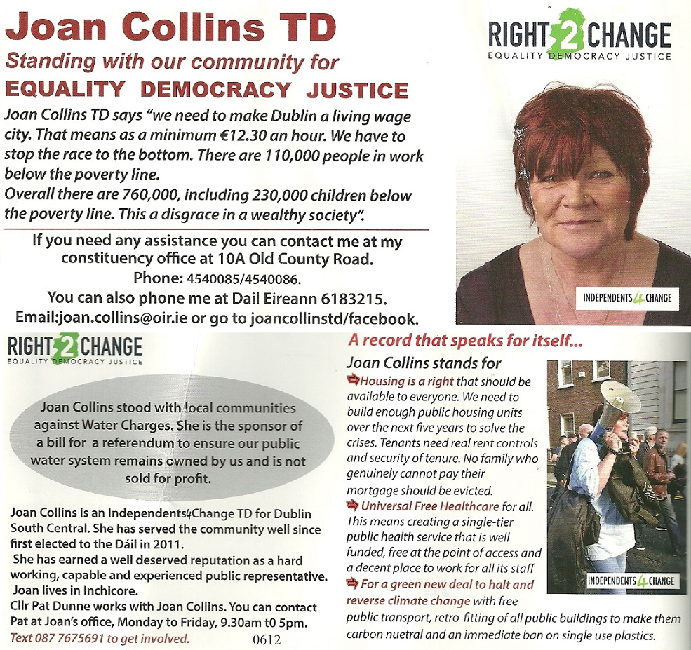 Leaflet from Joan Collins -Independents4Change – Dublin South Central #GE2020 » JoanCollinsGE20