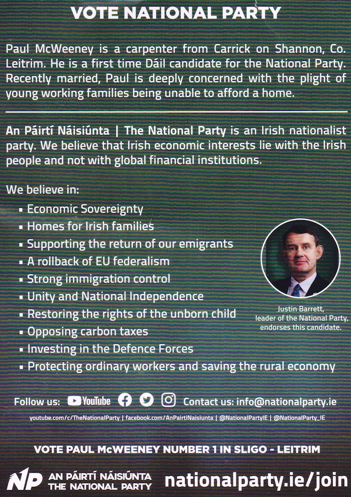 Leaflet from Paul McWeeney – The National Party – Sligo Leitrim #GE2020 » Paul McWeeney b