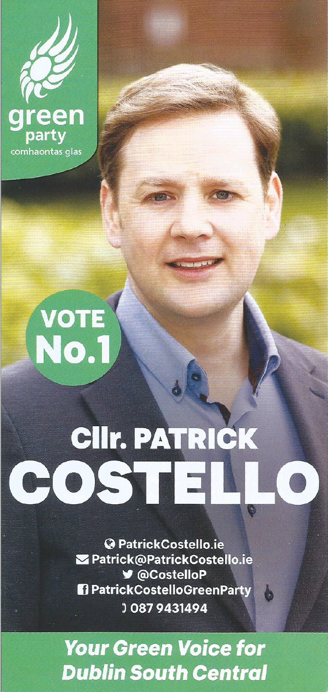 Leaflet from Patrick Costello -Green Party -Dublin South Central #GE2020 » PatrickCostelloDSC1