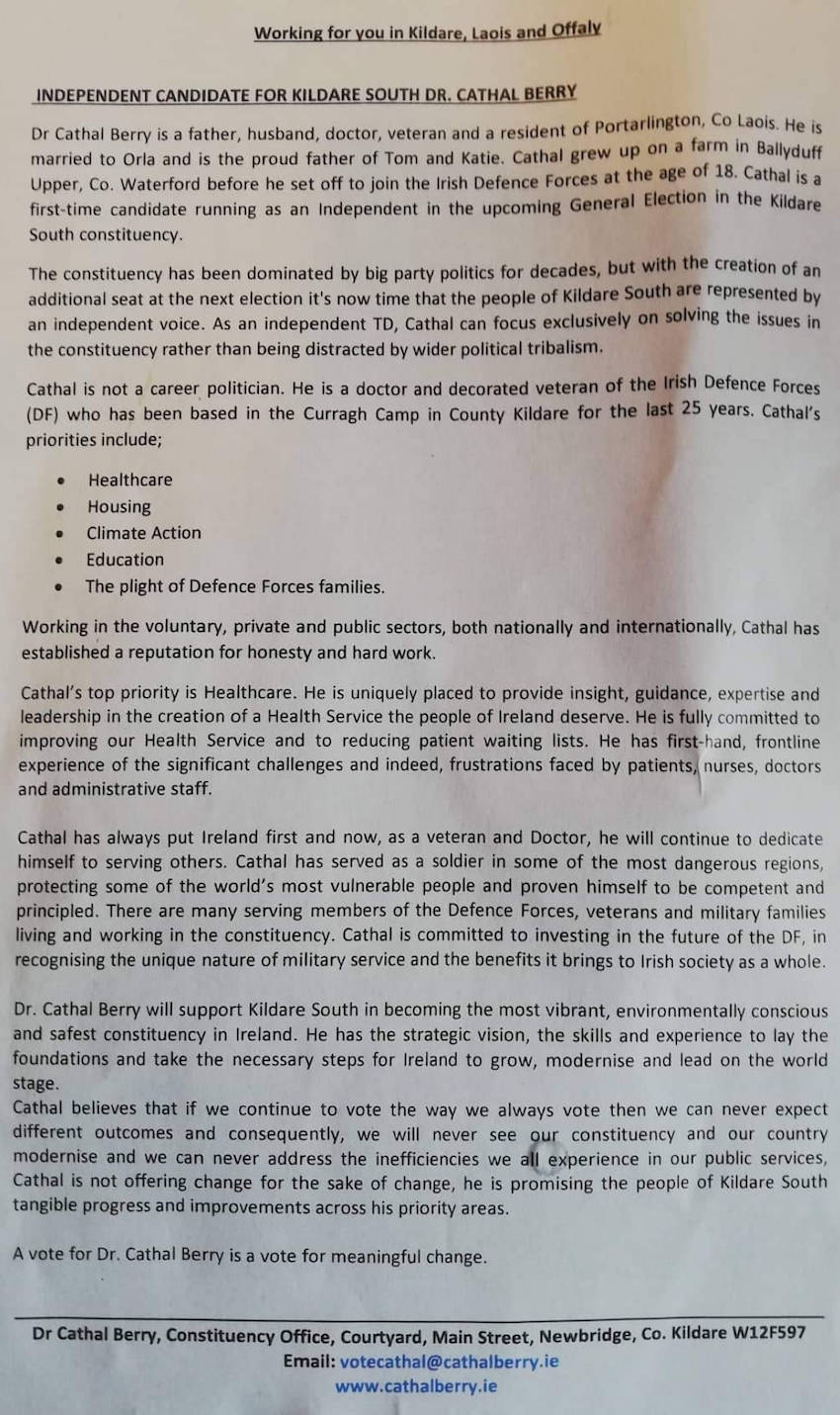 Leaflet from Cathal Berry – Independent – Kildare South #GE2020 » CathalBerry2
