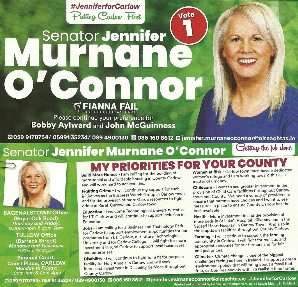 Leaflet from Jennifer Murnane O’Connor -Fianna Fáil – Carlow Kilkenny #GE2020 » JenniferMurnameOConnorGE20