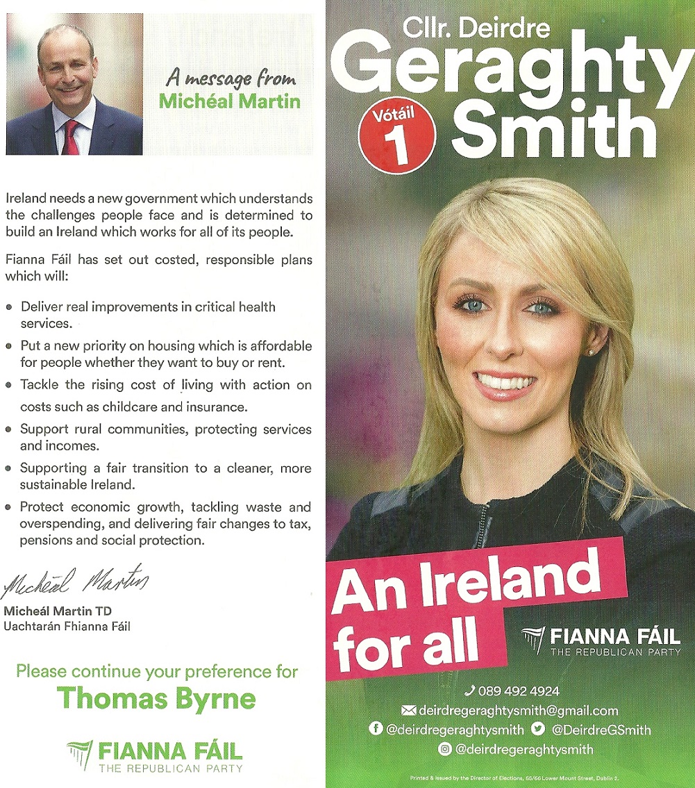 A Leaflet from Deirdre Geraghty Smith who is running for Fianna Fáil in Meath East.