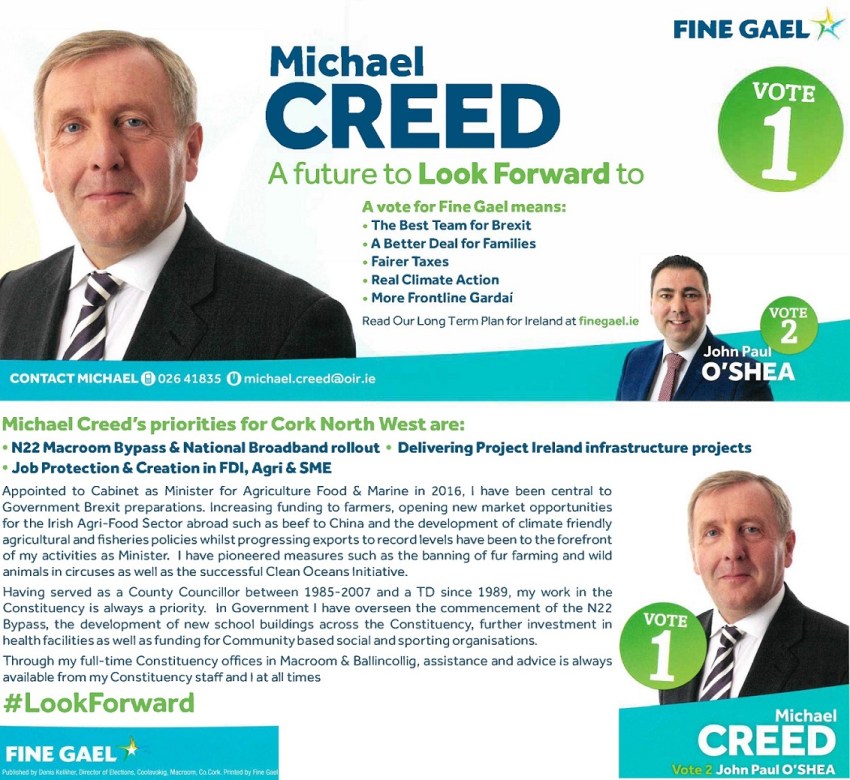 A Leaflet from Michael Creed running for Fine Gael in Cork North West.
