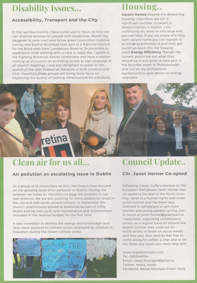 A Leaflet from Neasa Hourigan who is running for The Green Party in Dublin Central in the 2020 General Election.
